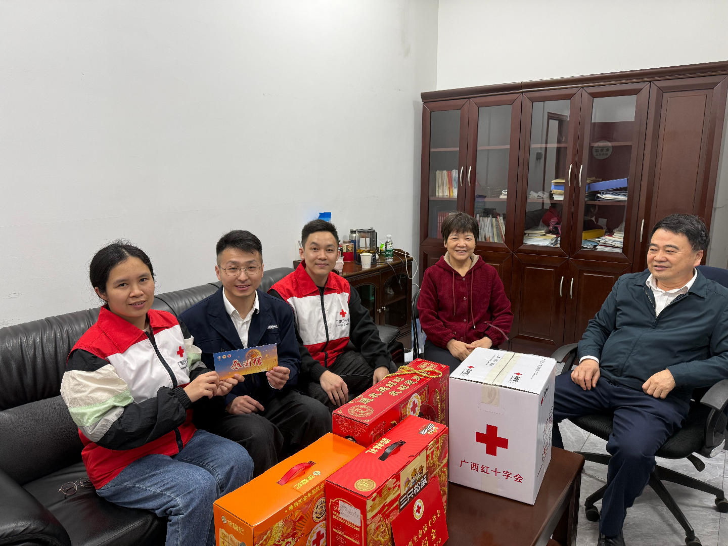 1月19日中国造血干细胞捐献者资料库广西管理中心、广西壮族自治区人体器官捐献管理中心志愿服务部负责人陈慧华一行我市慰问无偿献血非血缘造血干细胞捐献者等“三献”志愿者代表,向他们的大爱善举致以诚挚问候和崇高敬意,防城港市红十字会党组书记、常务副会长唐凤禧陪同慰问。